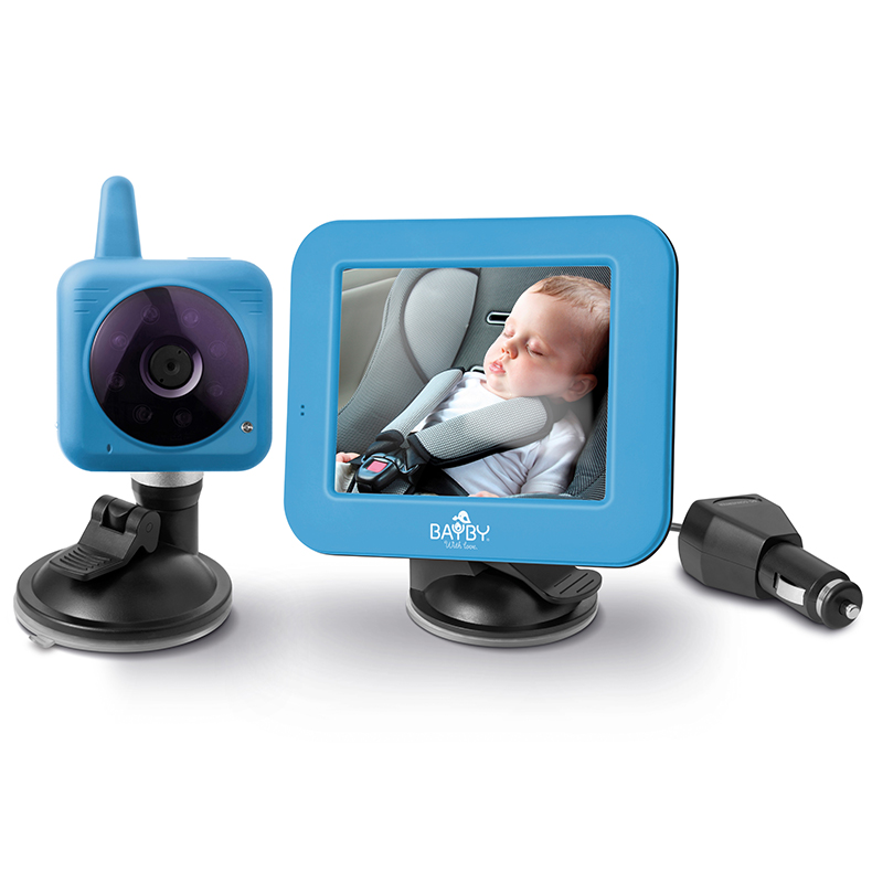 LCD barevný displej velikosti navigace (uhlopříčka 3,5") se držákem s přísavkou perfektně přichytí na čelní sklo a obdobně se připevní na boční okénko vedle dítěte druhá dětská část s digitální bezdrátovou kamerou. Kvalitní přísavky obě části dokonale přidrží na správném místě i na opravdu hrbolatých cestách. Rameno držáku kamery je díky kloubovému mechanismu a aretačnímu šroubu nastavitelné do mnoha poloh pro co nejlepší monitorování dítěte, navíc kamera má opravdu široký úhel záběru. Disponuje i funkcí nočního vidění, takže rodiče mají dítě ve dne v noci na očích, aniž by přestali věnovat dostatečnou pozornost řízení. LED indikátory na monitoru i kameře signalizují, zda jsou jednotky zapnuté.