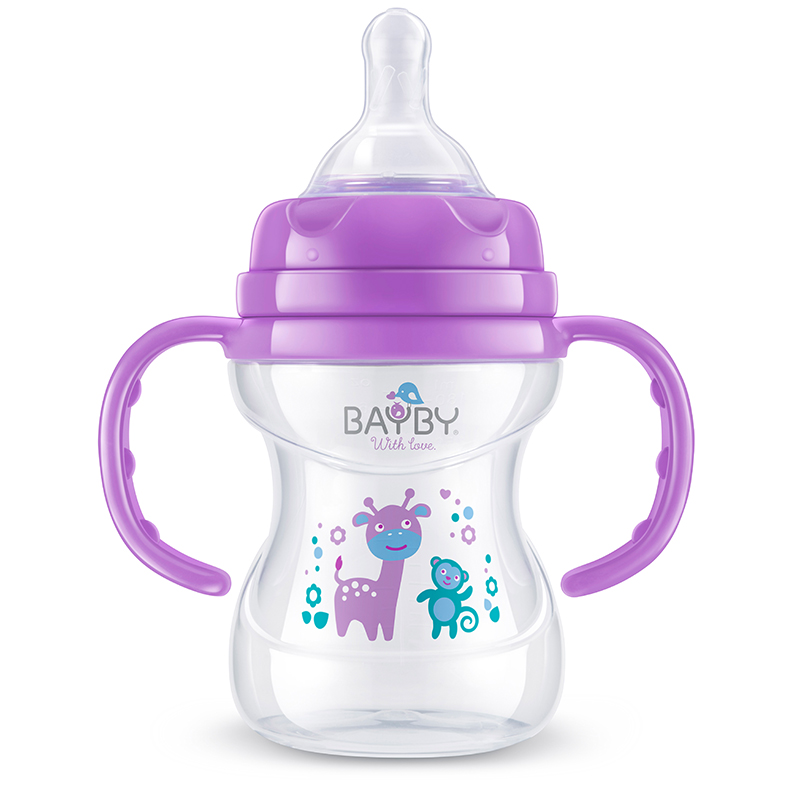 Kojenecká láhev BAYBY 6m+ s objemem 150 ml je tvarově přizpůsobená