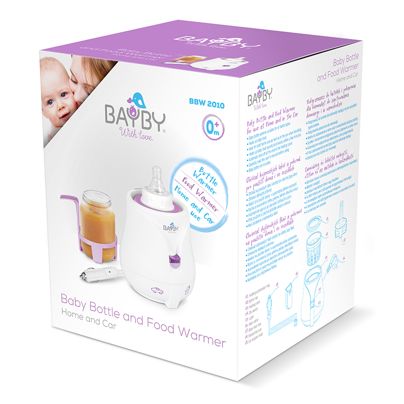 Stejně jako ostatní výrobky značky BAYBY, i ohřívač kojeneckých lahví a pokrmů BAYBY BBW 2010, je zajímavý už svým designem. Povrch v bílé barvě s jemným leskem oživují fialové detaily
