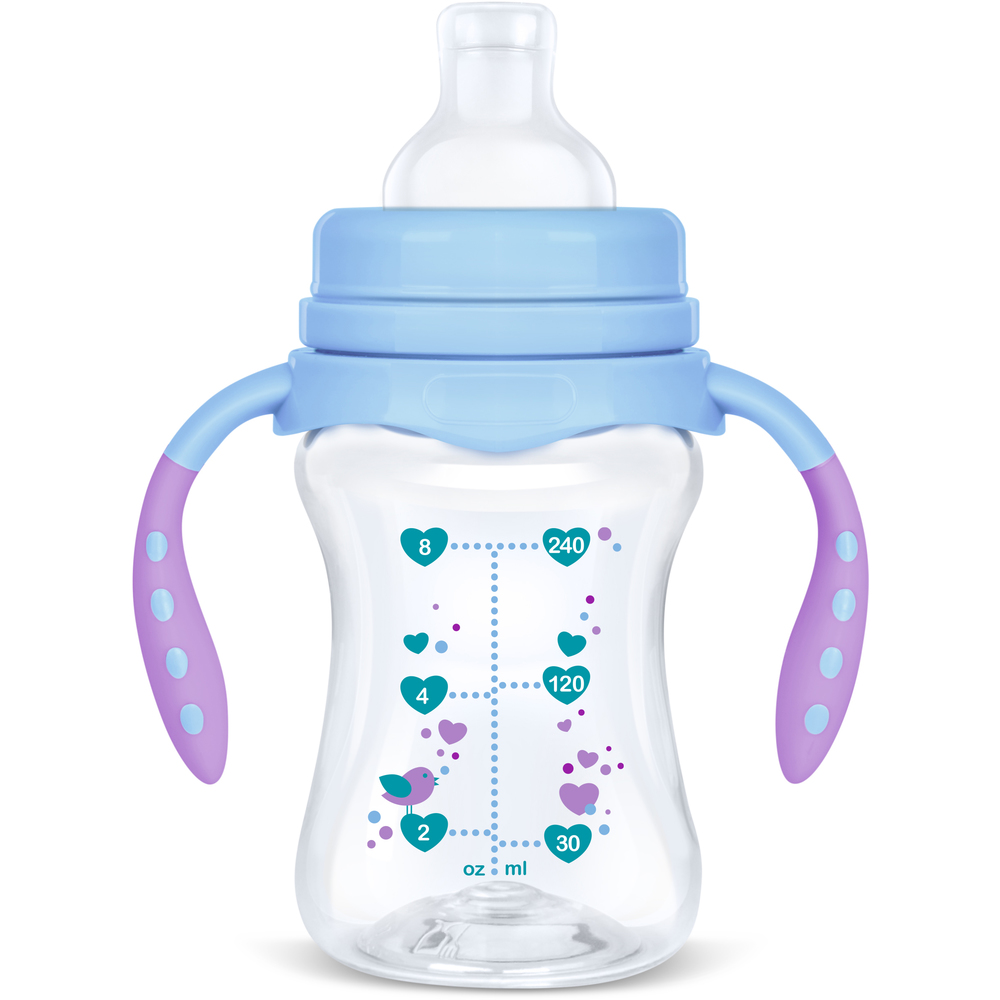 Netekoucí trénovací lahev s úchyty 240ml pro hladký přechod od kojení